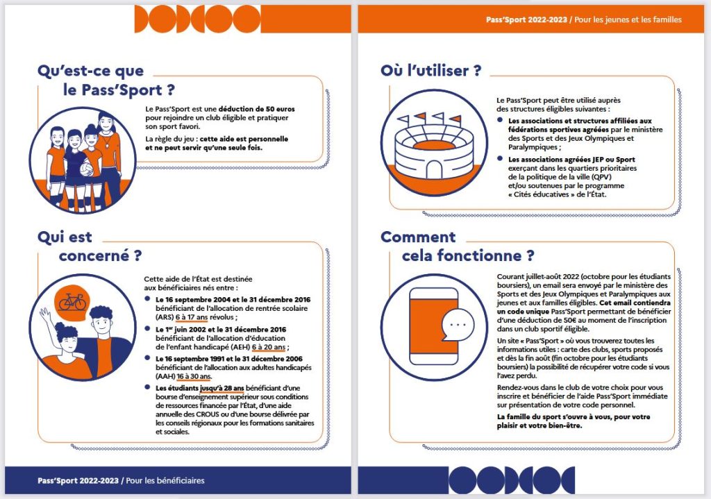 Lancé à la rentrée 2021, le Pass’Sport est une aide de l’État pour encourager la pratique sportive des jeunes, notamment pour ceux qui en sont les plus éloignés.