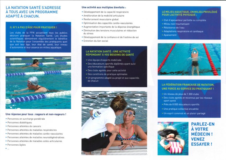 Activité aquatique (natation) encadrant des personnes ateintes de maladies chroniques. Sport adapté à ces pratiquants.