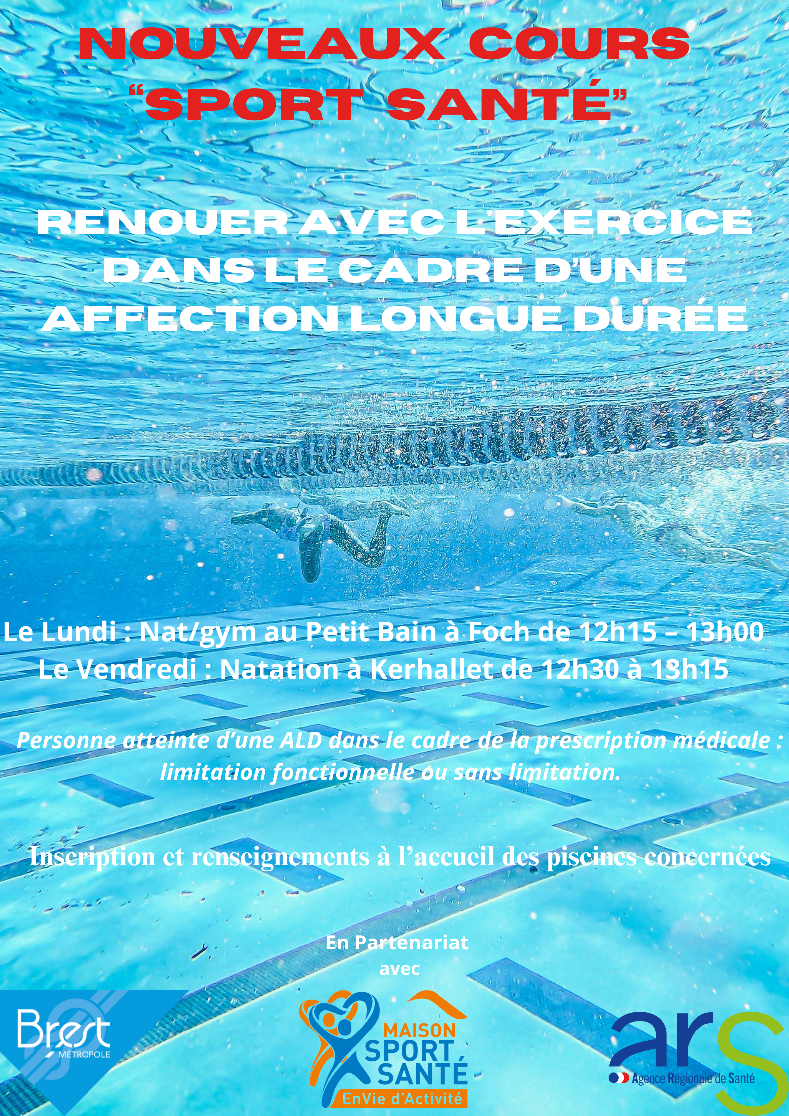 aquatiquePathologies prises en charge (activités « Maladies Chroniques » uniquement) :